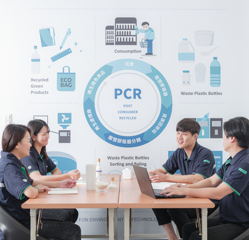 與大豐環保共同響應塑膠回收再生處理,將廢塑料再製為可重複使用的環保循環箱及再生名片盒;於廠內回收寶特瓶,並交由大豐環保處理,再製成 T-shirt回饋給其員工,形成企業內循環模式。