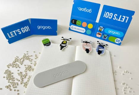 將報廢的車體外殼,透過大豐環保之再生處理量能經回收、粉碎、造粒、成型,製作成直尺、資料夾、書籤……等品牌風格滿點的各類文具用品,為綠能+綠色商品的永續代表作。