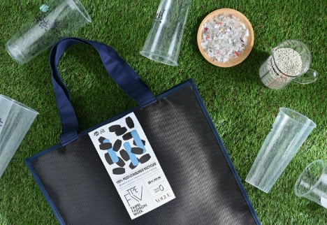 由回收後的塑膠5號PP,如手搖飲料杯、微波容器及豆漿瓶回收再製而成再生紀念提袋,只要經過妥善回收處理,就能有效的循環再利用。
