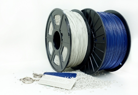 回收客戶之事務印表機後拆卸分類,並將ABS材質之外殼與塑膠組件粉碎造粒,再製作成3D列印線材,賦予高附加價值之循環途徑。
